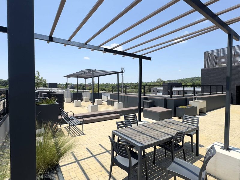 Contemporary urban living near Pretoria Country Club and The Village, featuring a private balcony with built-in braai and a designer kitchen — two bedrooms, two bathrooms, garage