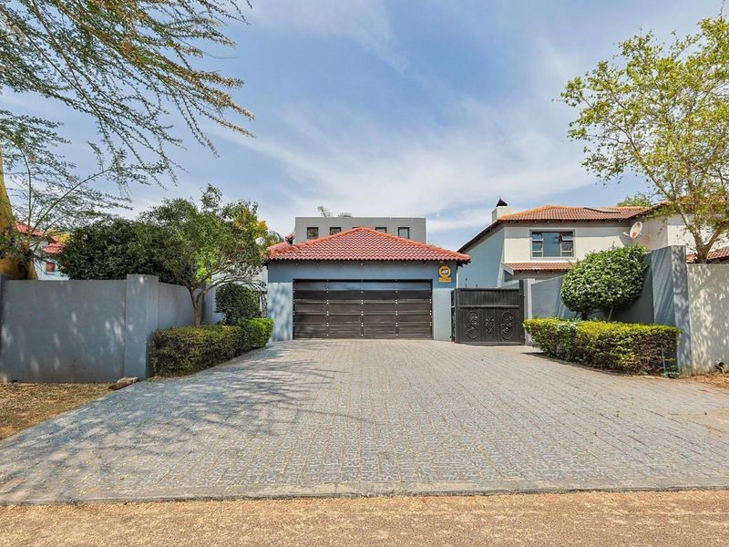 Entertainers' dream in a prestigious 24-hour guarded estate, private garden and pool with built-in bar and braai, modern chef's kitchen and balconies off five bedrooms.