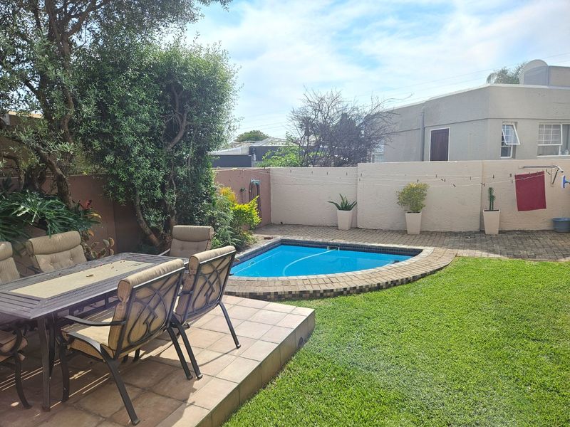 Effortless entertaining and private living in a secure, well-maintained complex; features a solar-powered system for energy independence, separate braai room, pool and three bedrooms, two bathrooms.