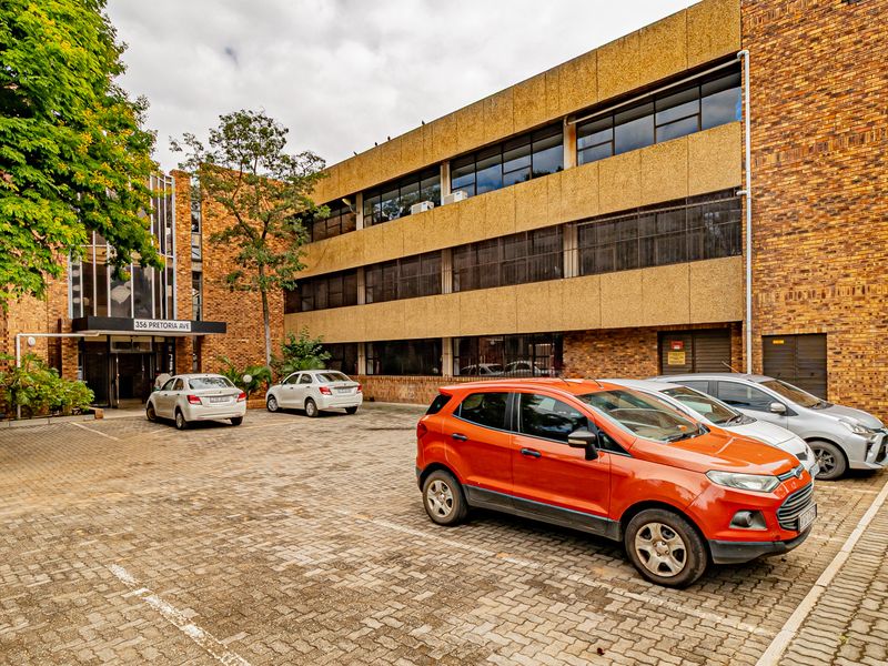 Move-ready office in Randburg's main business node, minutes from Gautrain bus stop and courts, featuring an exclusive-use kitchen and two private bathrooms.