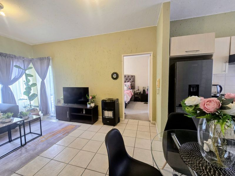 Enjoy low-maintenance Randburg living in Ferndale with sunlit open-plan flow from a modern kitchen to a generous lounge and balcony; secure carport parking, two bedrooms, one bath.