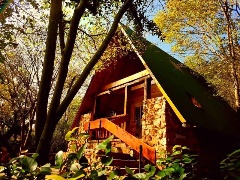 Embrace eco-conscious mountain living near Lanseria Airport and Cradle of Humankind — timber home with off-grid solar and borehole, two bedrooms, two bathrooms, single garage.