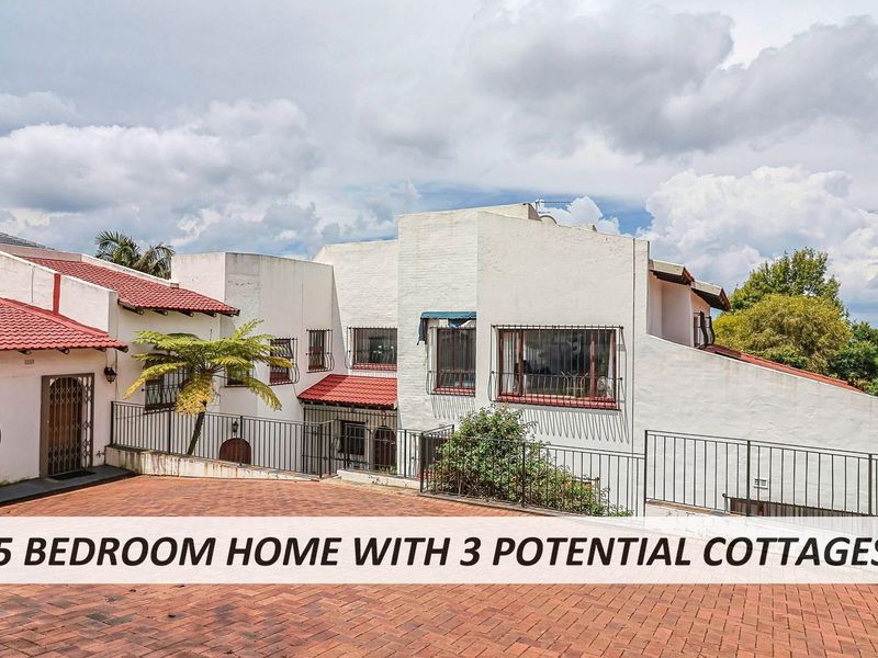 Ideal for multi-generational living or investors, this 2,360 m² garden oasis features a 4-bed main residence plus two independent cottages, swimming pool, solar and borehole.