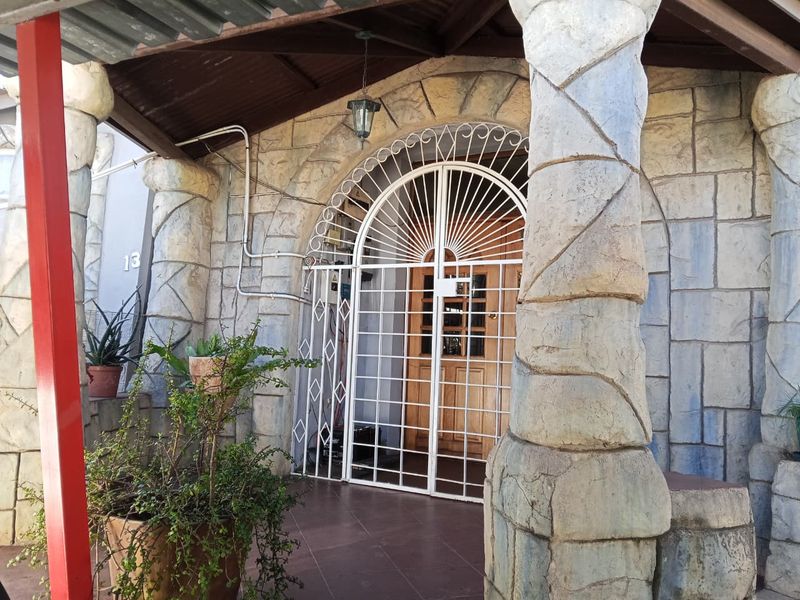 Easy family living with generous indoor-outdoor space in established Homelake, Randfontein, close to schools and shops. Large yard with secure fencing; three bedrooms, two bathrooms, single garage.