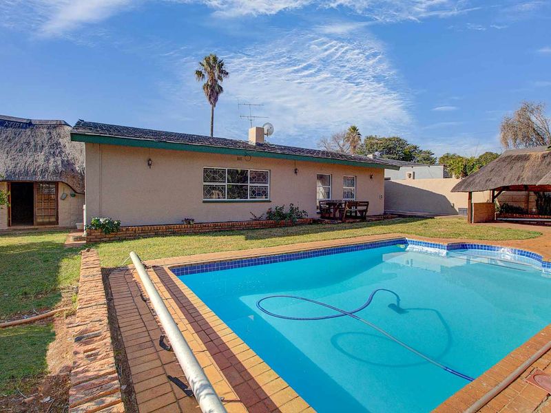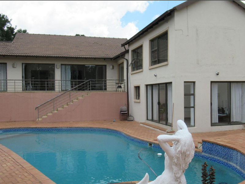 Entertainer's family home in Horison near Kloofendal Nature Reserve — leafy 1,084m2 garden with pool and built-in braai, plus self-contained flatlet. Four bedrooms, three bathrooms.