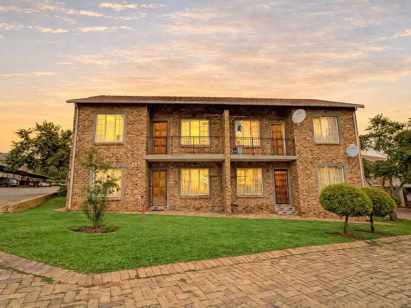Relax in a secure, friendly complex bordering a greenbelt, with bright open living, breakfast nook and private paved patio for braais — two bedrooms, one bath, three covered parking.