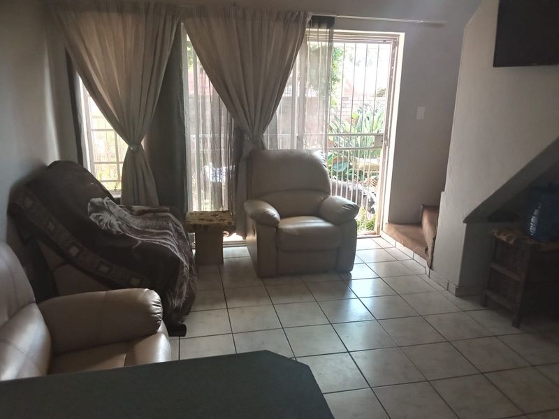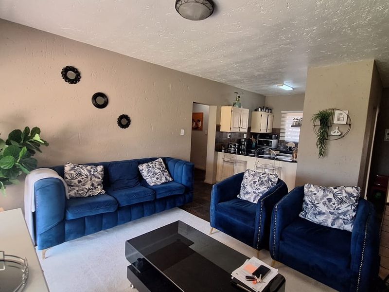 Relaxed family living in a secure, well-located complex near shops and schools, with an airy open-plan lounge, well-finished kitchen and breakfast nook, three bedrooms, one bathroom, double carport.