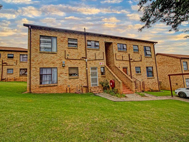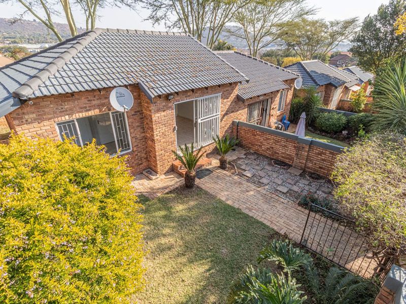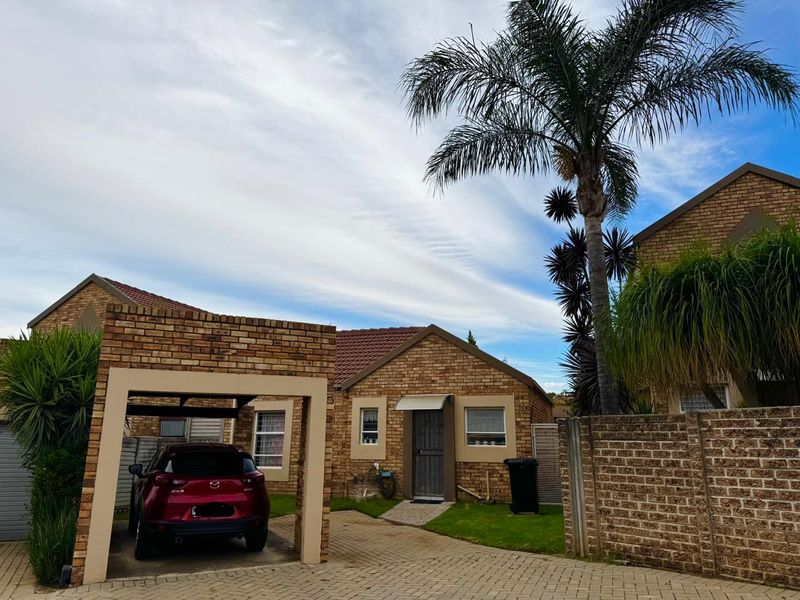 Peaceful, secure suburban living in Wilgeheuwel near Retail Crossing and Curro Academy, with a private garden, tiled living area and air-conditioned comfort — two bedrooms, one bathroom, double carport.