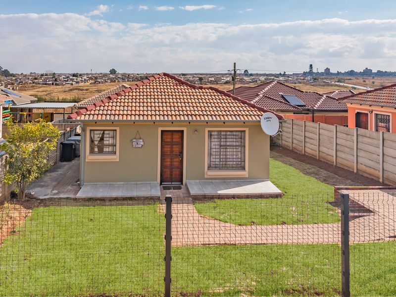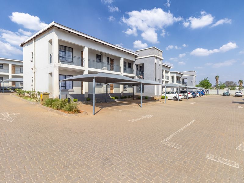 Relaxed family living in sought-after Witpoortjie’s Epic Estate, with sunny patio and communal pool — two bedrooms, one bathroom and a single carport.