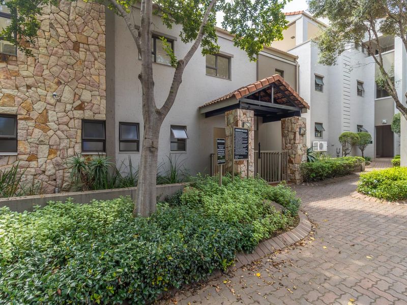Enjoy leafy Bryanston living steps from cafes, shops and the country club; one-bedroom, one-bath apartment with private patio, wooden floors and pool with built-in braai.