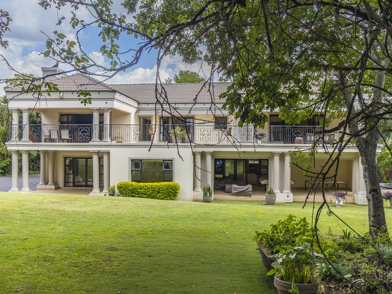 Effortless entertaining on a private 4,000m² Bryanston panhandle estate near Sandton and top schools, featuring a solar-heated pool, landscaped gardens and six-bedroom main plus cottage.