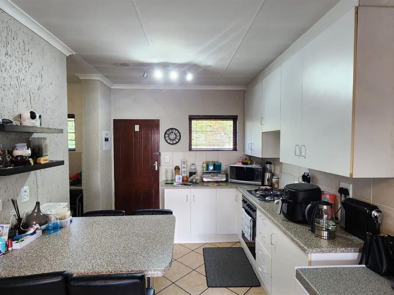 Entertain effortlessly on a covered patio with built-in braai, rock pool and lush garden in a secure estate close to schools, malls and highways. Three beds, two baths, garage.