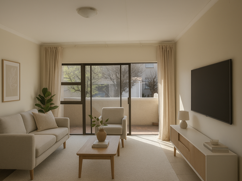 Enjoy low-maintenance, sun-filled living near Woodmead Shopping Centre and Mall of Africa; open-plan lounge with fitted kitchen, two bedrooms and one bathroom — ideal starter or investment.