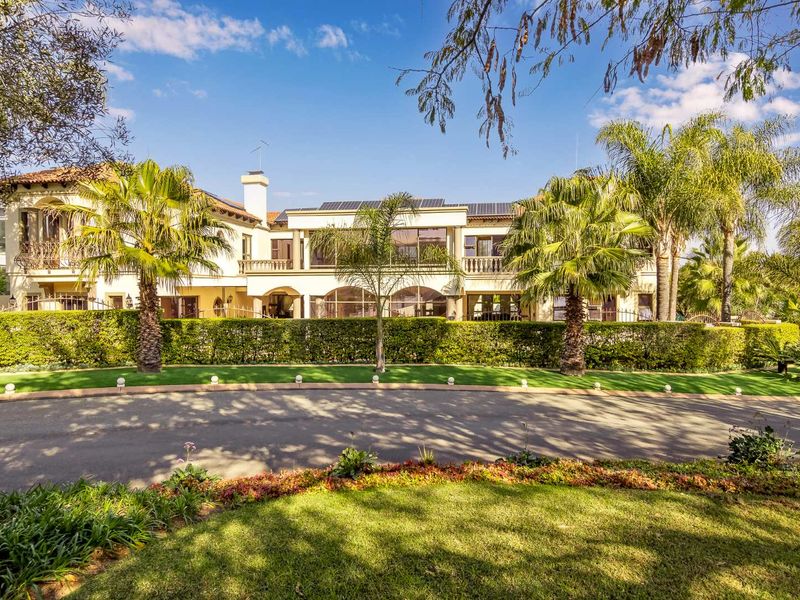 Golf-course living in Dainfern: entertain effortlessly with a heated pool, expansive manicured garden and gourmet kitchen — luxurious master suite, home gym, and six garages.