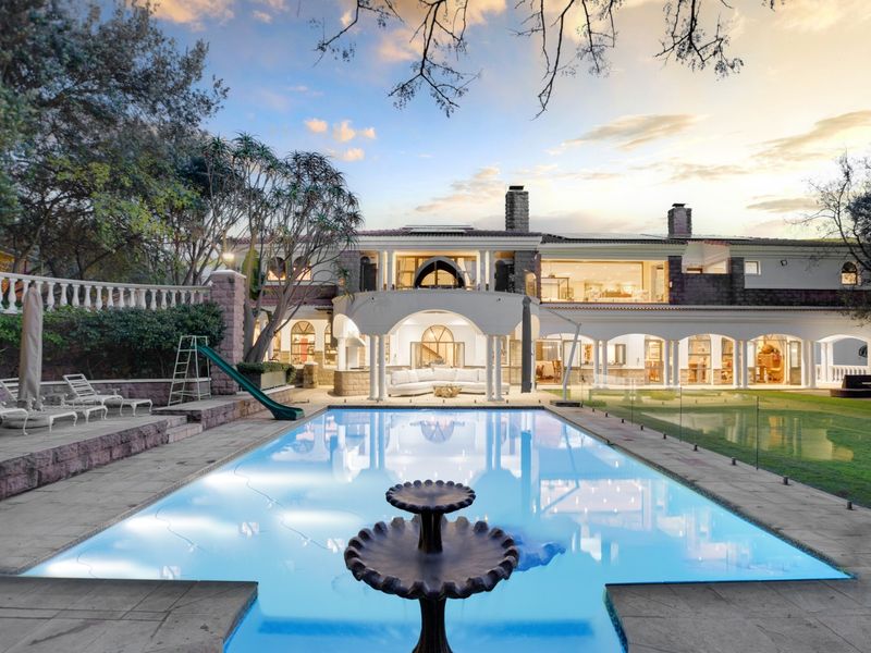Entertainer’s greenbelt lifestyle in Dainfern Golf Estate, moments from Lanseria and top schools. Open-plan home with elevated covered patio, pool and seamless indoor-outdoor flow; four bedrooms, 4.5 baths, 3 garages.