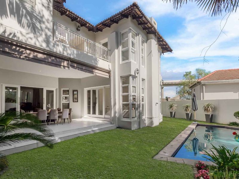 Family-focused country living in a quiet estate adjacent to Dainfern College, with flowing entertaining areas to a covered patio, landscaped garden and pool; five beds, 3.5 baths, triple garage.