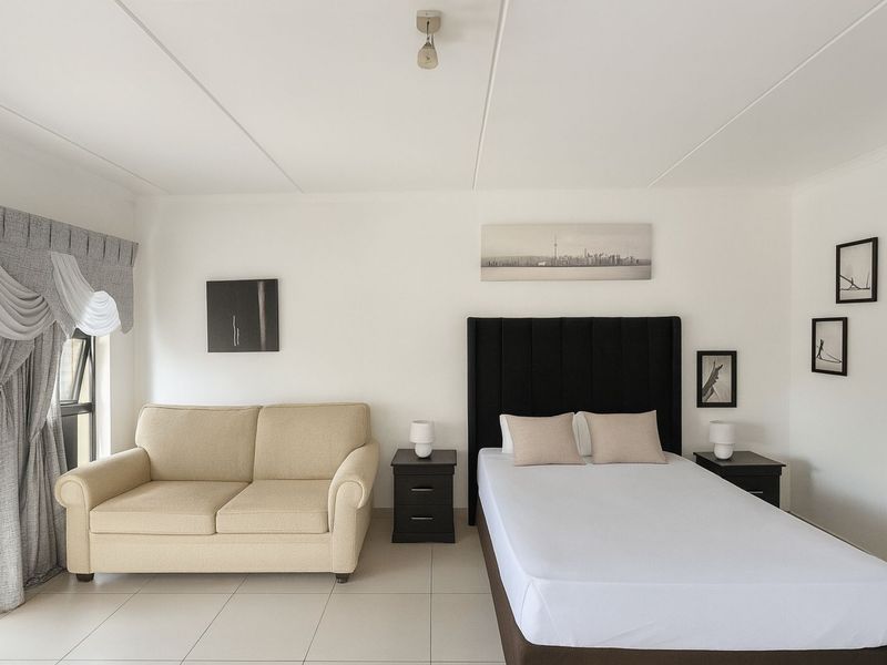Effortless Dainfern living — bright lock-up-and-go studio with private balcony for morning coffee, modern kitchen and utility alcove in a secure complex, moments from Dainfern Square.