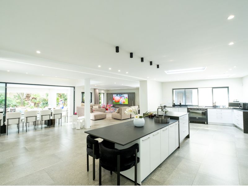 Entertainer's dream in Inanda, Sandton — effortless indoor-outdoor living with manicured gardens, sparkling pool and established edible garden. Five en-suite bedrooms, six bathrooms and double garage.