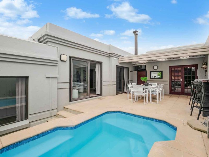 Mediterranean-style living in Lonehill's exclusive Mykonos Estate, perfect for entertaining around a sparkling pool and wooden deck, with a high-end kitchen and private third-bedroom suite.