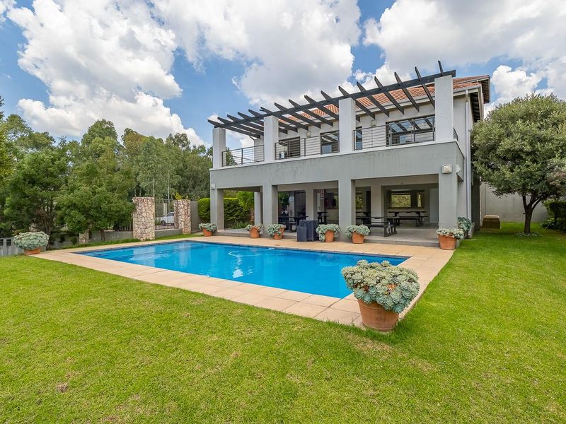 Relax in Lonehill's leafy, prestigious circle with wrap-around garden and pool; seamless indoor-outdoor living centered on a fitted kitchen and lapa — three bedrooms, two bathrooms.