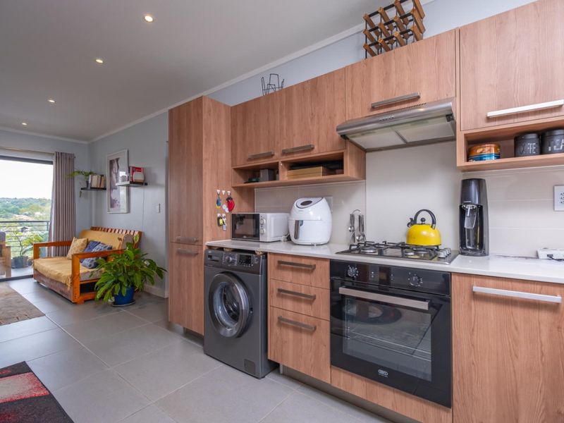 Sunlit open-plan apartment with seamless indoor-outdoor flow to a private patio, in the heart of Lonehill. Modern kitchen, communal pool and braai; includes one bedroom, one bathroom.