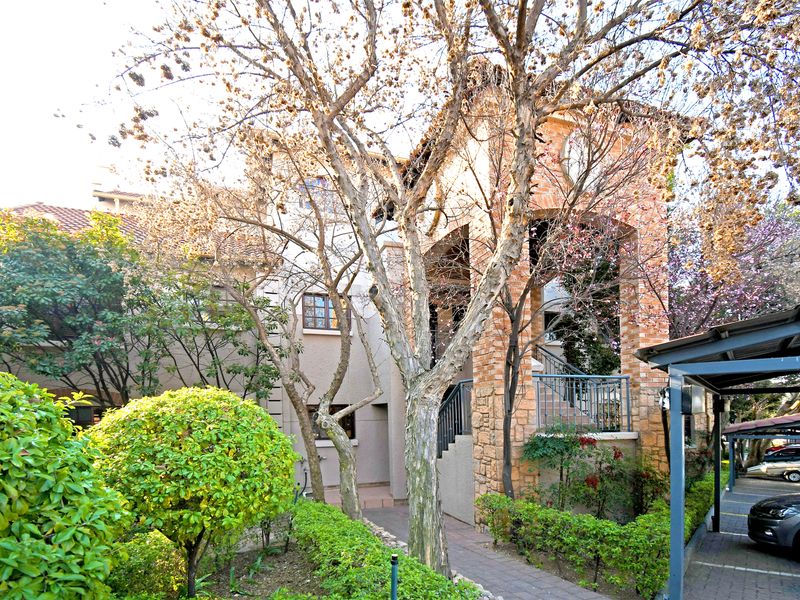 Low-maintenance urban living in Sandton's prestigious Casablanca Estate, Lonehill — private undercover patio opening to a rare garden, tenant in place, one-bedroom, one-bath with undercover parking.