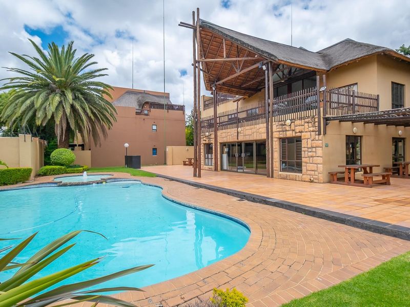 Relaxed suburban living near Lonehill Shopping and Montecasino — loft penthouse with two balconies and views forever, access to pools, tennis, and covered parking; one bedroom, one bath.