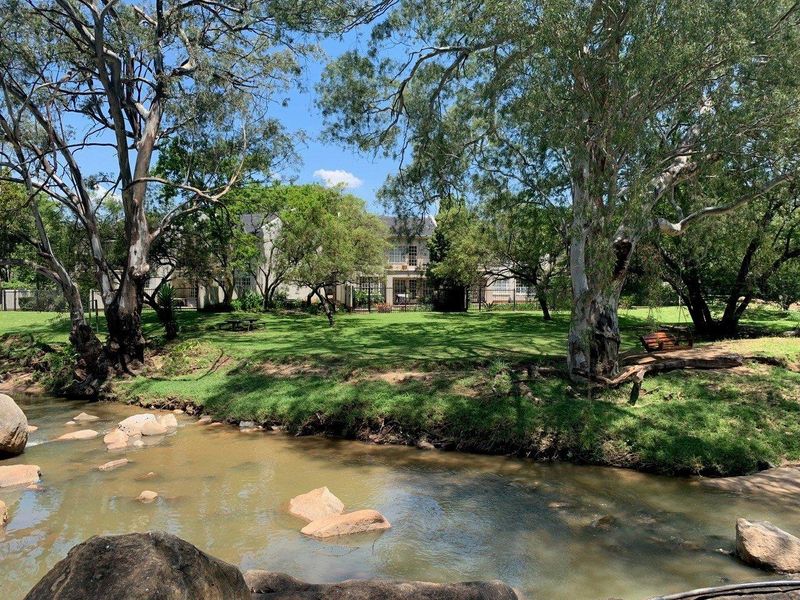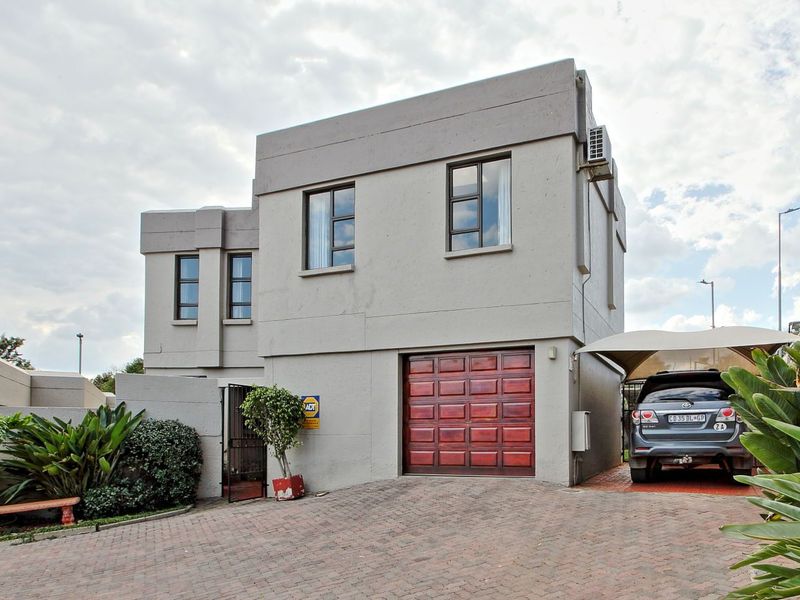 Secure lock-up-and-go family living near Sandton's business hub — pet-friendly estate with private fenced pool and clubhouse, wrap-around garden, three bedrooms and garage.