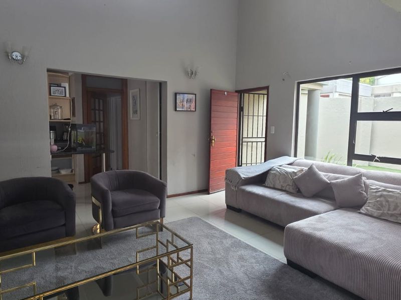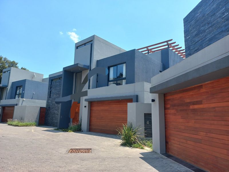 Effortless urban entertaining in a secure boomed enclave near Sandton CBD, with stackable glass flowing to a private pool and manicured garden, chef’s quartz-island kitchen, four ensuite bedrooms.