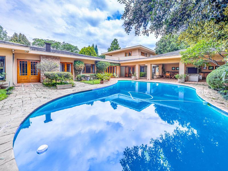 6-bedroom, 6.5-bathroom home on 5250m² with 6 garages, 4 open parking, and 800m² floor size in Sandton.