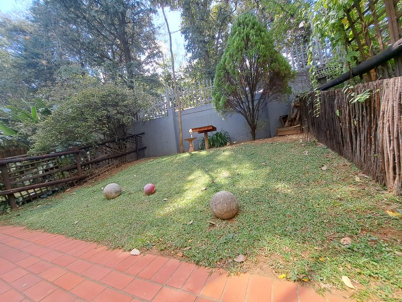 City-edge living with leafy tranquility in Sunset Acres, minutes from Sandton/Benmore — spacious north-facing lounge flowing to covered patio and communal pool; two bedrooms, two baths, two parking bays.