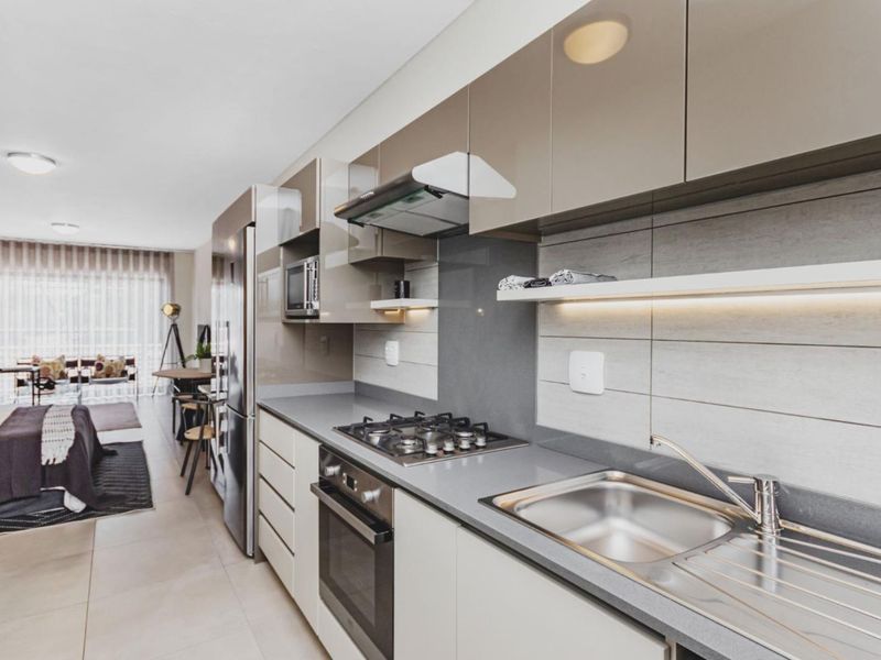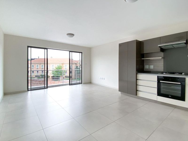 Live steps from Sandton's amenities in a secure, contemporary complex offering a clubhouse with pool, full backup power and high-speed WiFi — 2-bed, 2-bath, single parking.