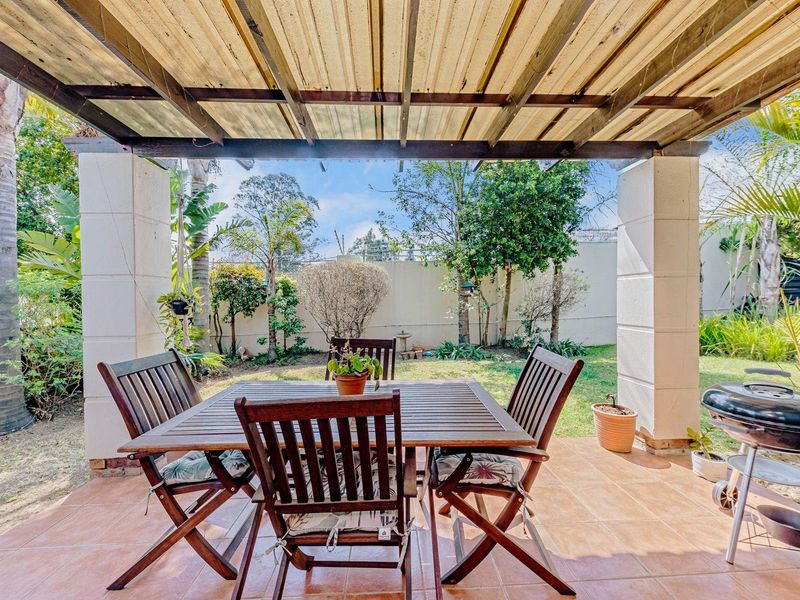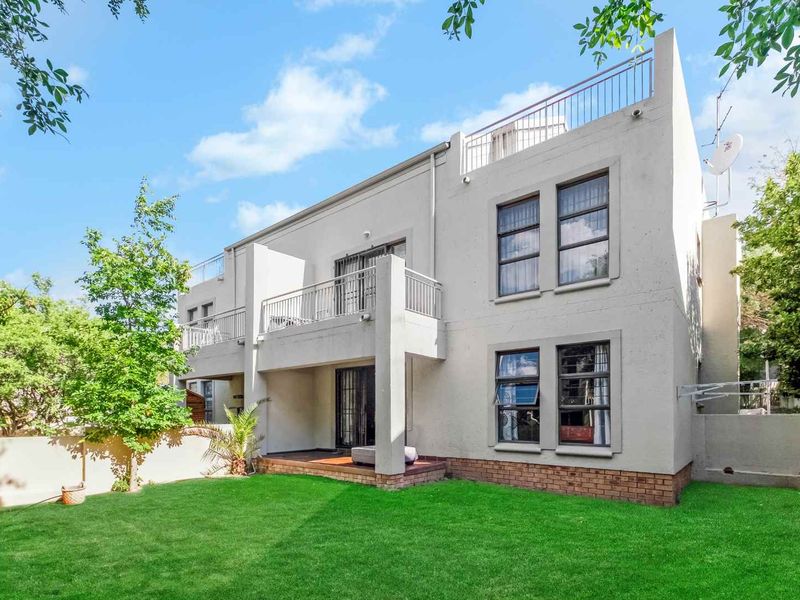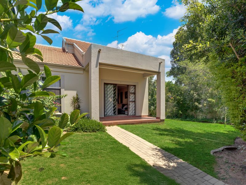 Enjoy garden-suburb living in Paulshof, steps from Rietfontein Nature Reserve and Cambridge Crossing, featuring a wrap-around garden and covered patio — three bedrooms, two bathrooms, double garage.