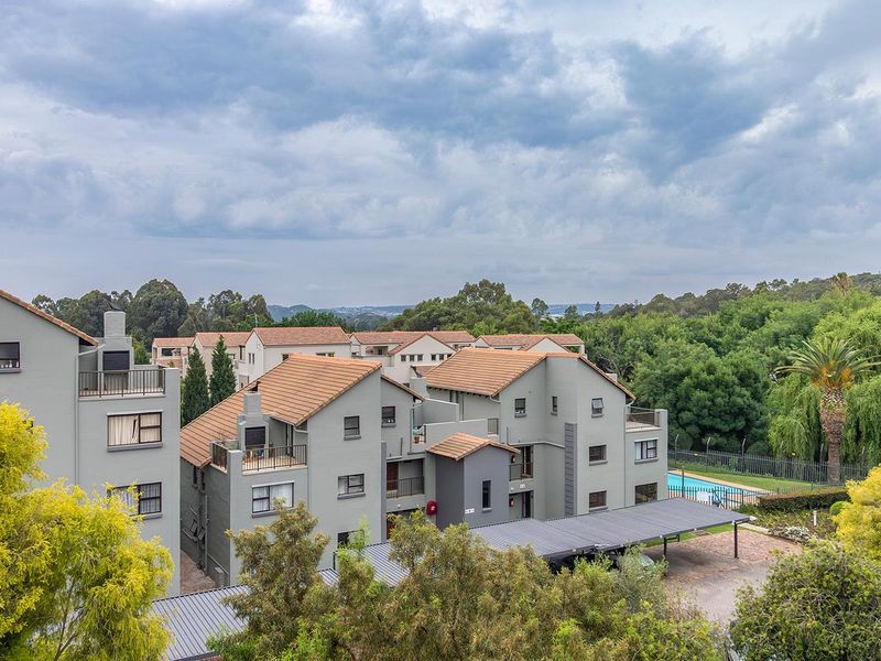 Elevated treetop living in Paulshof lifestyle estate, private first-floor loft with large covered terrace and granite kitchen. Enjoy pool, restaurant, braai facilities; two bedrooms, one bath, two covered bays.