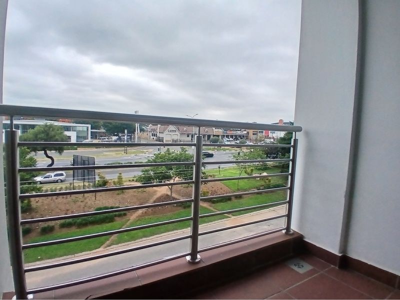 End-of-avenue River View apartment in vibrant Rivonia, steps from Rivonia Village and N1. Open-plan living opens to a balcony, granite kitchen, pool, 24-hour security, two parking bays, 2 beds/2 baths.