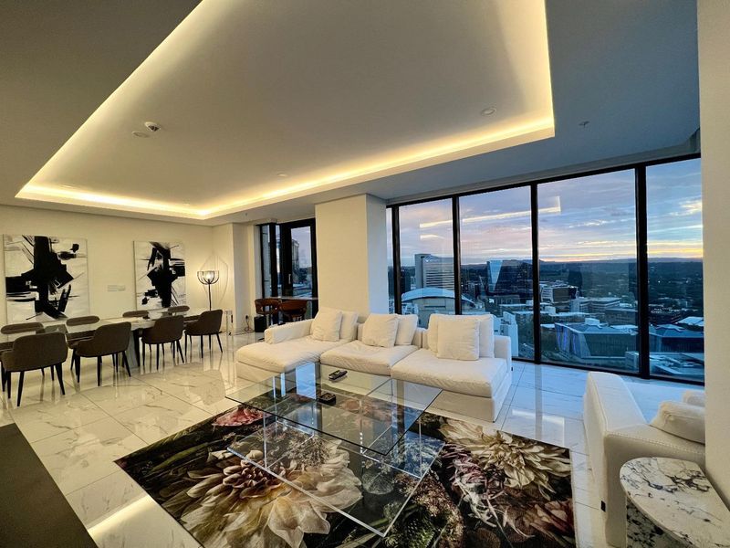 Penthouse in Sandton: 3 bedrooms, 3.5 bathrooms, 532 m², private elevators, and panoramic city views.