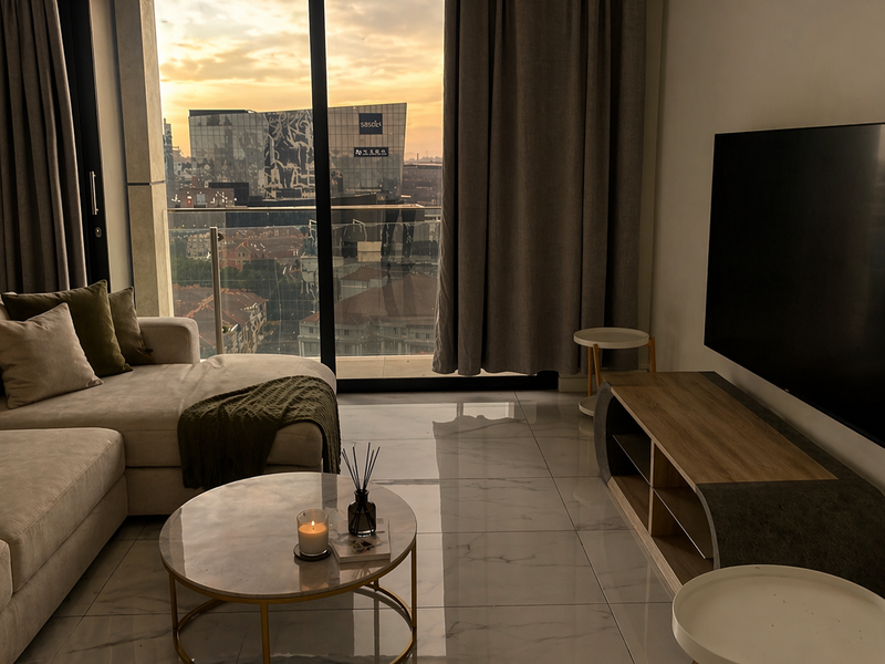 Live Sandton's vibrant business-and-leisure lifestyle in a fully furnished loft with rooftop yoga bar, pool and cinema access — ideal for professionals. One bedroom, one bathroom, secure parking.