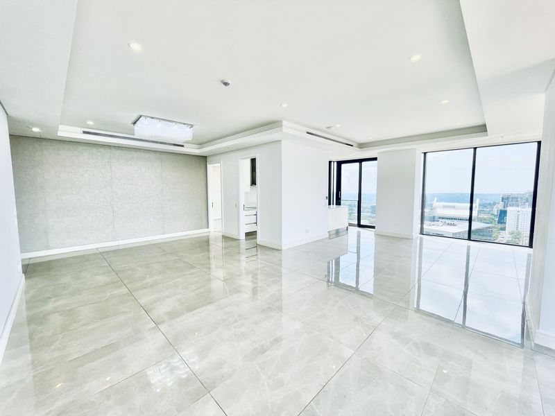 Experience vibrant Sandton living from Central Square — contemporary open-plan apartment with floor-to-ceiling views, three en-suite bedrooms, deep balcony and access to a 25m rim-flow skydeck pool.