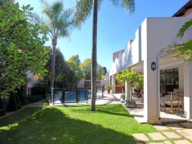 Effortless executive living in Sandton, moments from the CBD, Gautrain and premier shopping. Enjoy a private garden with pool and covered patio; optional self-contained cottage, four bedrooms, double garage.