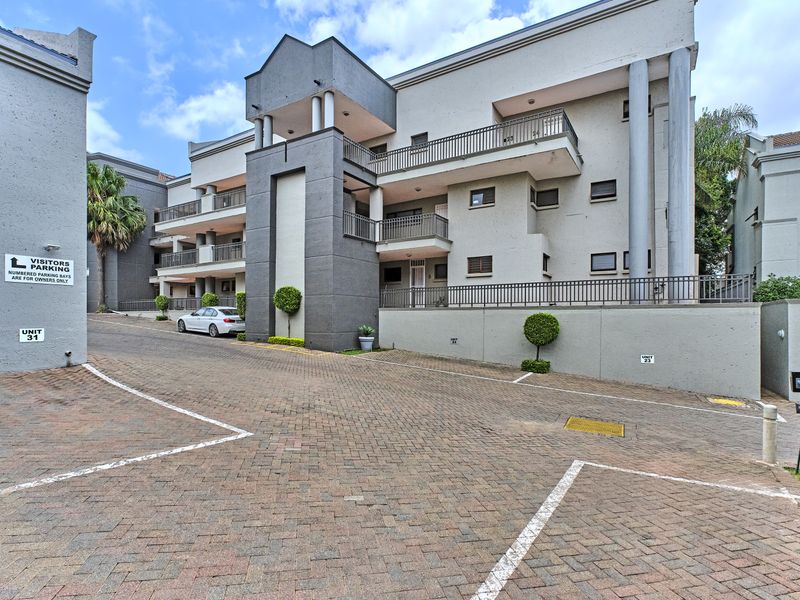 Leafy Strathavon garden living with quick Sandton access; ground-floor apartment opens to a private pet-friendly garden and covered patio. Two beds, two baths, secure complex.