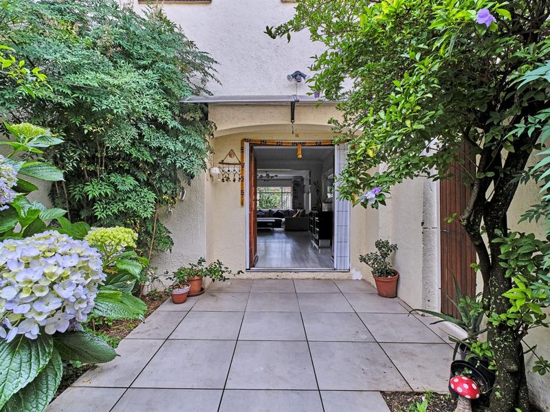 Peaceful lock-up-and-go living moments from Sandton CBD, shops and Gautrain — renovated granite kitchen, covered patio opening to private garden. Three bedrooms, two-and-a-half baths and single garage.