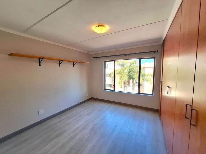 Low-maintenance urban apartment near Waterfall Drive and Rivonia Road, ideal for first-timers; upstairs wooden loft opens to a large balcony with views; two bedrooms, one bath, single carport.