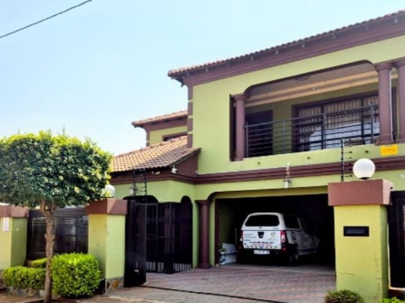 Reed-front living in Soshanguve Block KK offers modern double-storey comfort with serene wetland views, paved yard and electric fence for security — eight bedrooms, five bathrooms, four garages.