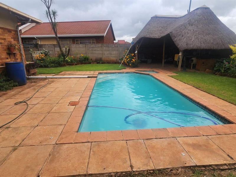 Relaxed family living in Welgedacht, Springs with a blue swimming pool for effortless entertaining, open-plan kitchen and three-bedroom, one-bath fixer-upper offering great renovation potential.