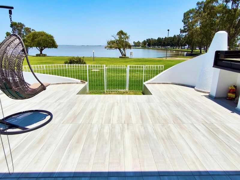 Peaceful dam-side lock-up-and-go living at Vaal Dam in a pet-friendly waterfront complex with boat launch; large tiled patio with built-in braai and sunken jacuzzi. 3 bedrooms, 3 bathrooms, double garage.