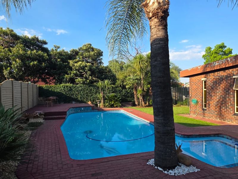 Entertain outdoors with pool and closed lapa boasting built-in braai in a family-friendly suburban garden with irrigation and borehole; three bedrooms, two bathrooms, plentiful parking.