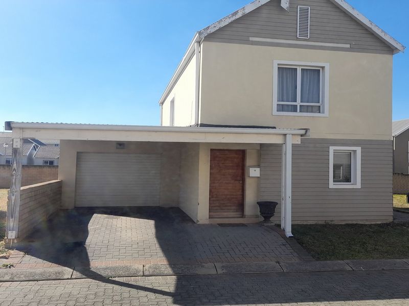 Relaxed riverside living in a 24-hour guarded estate with a modern open-plan kitchen-lounge, private rear courtyard and guest toilet downstairs; two bedrooms upstairs, one bathroom and single garage.