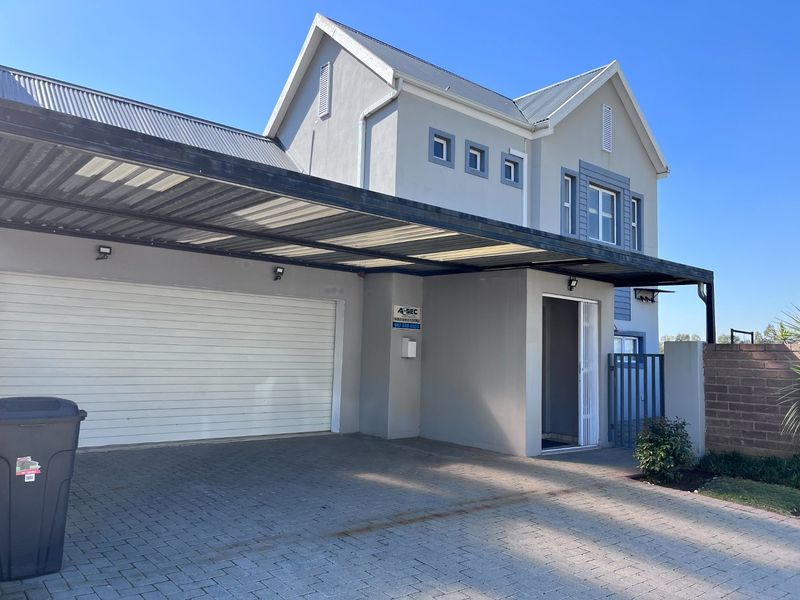Enjoy secure estate living with riverfront, clubhouse and walking distance to universities; open-plan entertaining extends to a covered patio with built-in braai and modern kitchen. Three bedrooms, three bathrooms.