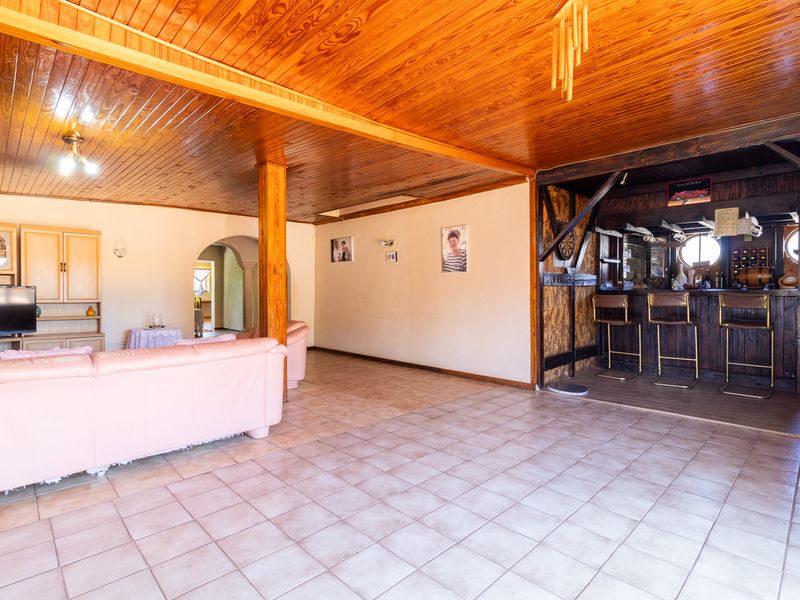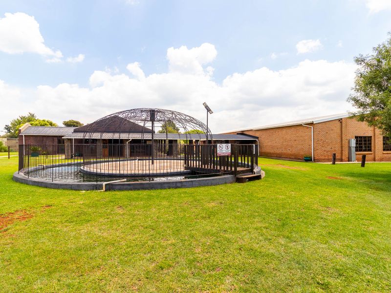 Country entertainer's haven in gated Tedderfield, bordering the Airpark, with a massive lapa and rotisserie braai overlooking the pool — four bedrooms plus three income flatlets.