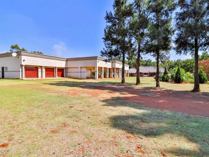 Entertainer's country retreat in gated Tedderfield Estate, adjoining the airpark, with a thatch lapa and rotisserie braai, sparkling pool, income-generating flatlets and large garden.